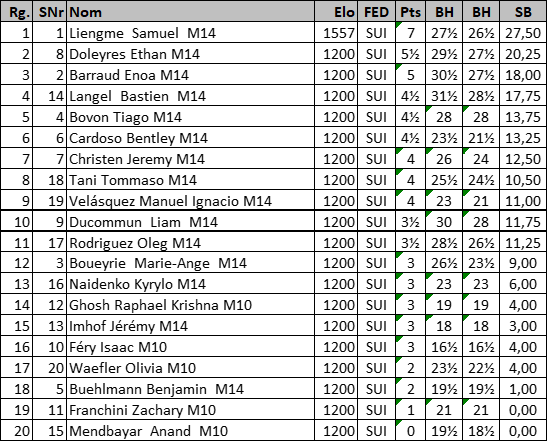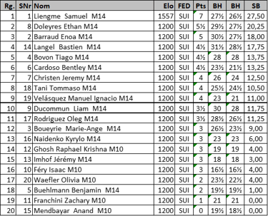 Bravo aux 36 participants du tournoi cantonal junior 2025. Cette beau nombre de joueurs et joueuses confirme la tendances des dernières années. Rendez-vous en 2026 !